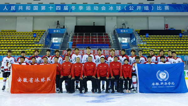 经安徽省体育局批准,beat365网登冰球队代表安徽省参加全国第十四届冬季运动会。为调整好大家的比赛状态,赛前一周beat365网登冰球队赴齐齐哈尔市进行封闭式管理,参加陆地加冰上练习,在教练员的带领下,全体队员认真完成训练任务,提高队友间配合的默契度,积极备赛。比赛过程中,beat365网登队员面对强劲对手时,秉持着“不抛弃、不放弃”的精神,积极应对,抓准时机,强势反攻,充分展现了新华学子顽强拼搏、奋勇争先的青春风采。