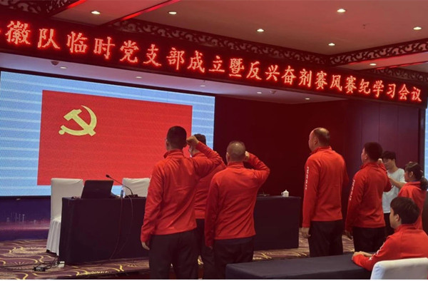 此外,为充分发挥党支部战斗堡垒作用和党员先锋模范作用,加强赛区运动队管理,严肃赛风赛纪和反兴奋剂工作要求,经上级党组织批准,7月27日,安徽省代表队在赛前正式成立安徽省男子冰球队赛区临时党支部。该党支部的成立得到了中国冰球协会、安徽省冰球协会等各大媒体的宣传报道,起到了良好的引领和示范作用。