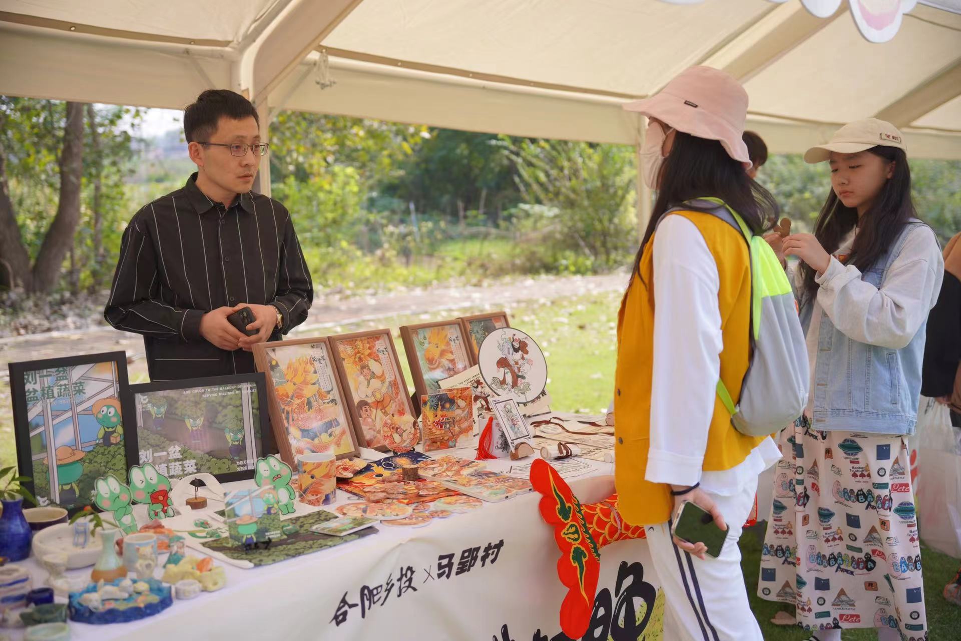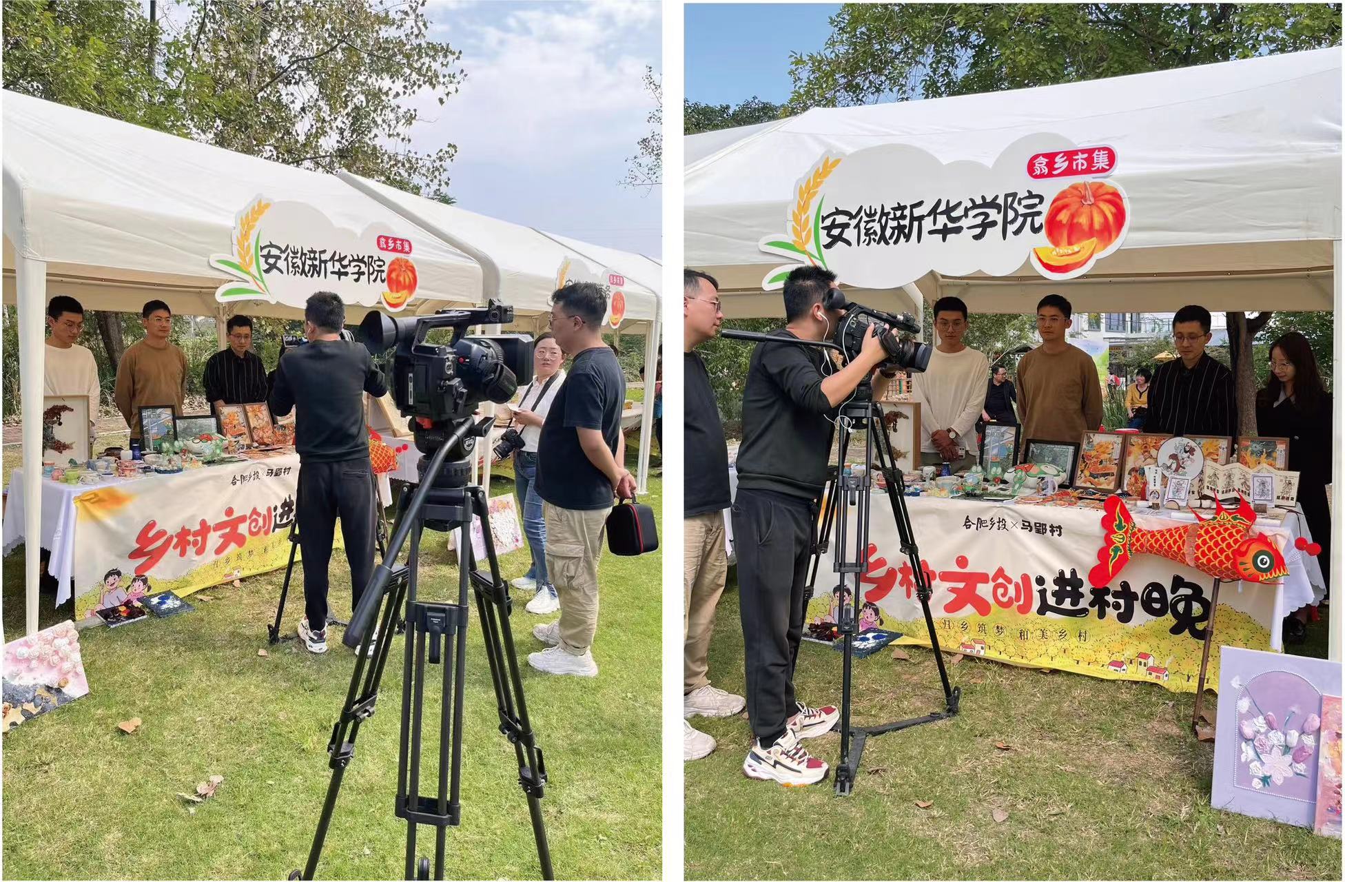 本网讯(通讯员:江河、朱蕾)为展现我国新农村丰硕成果和乡村振兴新气象,由中国文化和旅游部主办,文化和旅游部公共服务司、文化和旅游部公共文化发展中心、安徽省文化和旅游厅承办,安徽省文化馆、中国文化馆协会、合肥市文化和旅游局、长丰县人民政府实施的“大地欢歌·美好安徽”全国秋季“村晚”合肥长丰示范展示活动于2023年10月14日在合肥市长丰县杨庙镇马郢村举行,国家公共文化云、安徽公共文化云全程直播。beat365网登艺术学院教师王晓俊、朱蕾、王伟指导学生创作的30多件文创作品荣幸被推选参加本次现场“乡村好物展”直播活动。