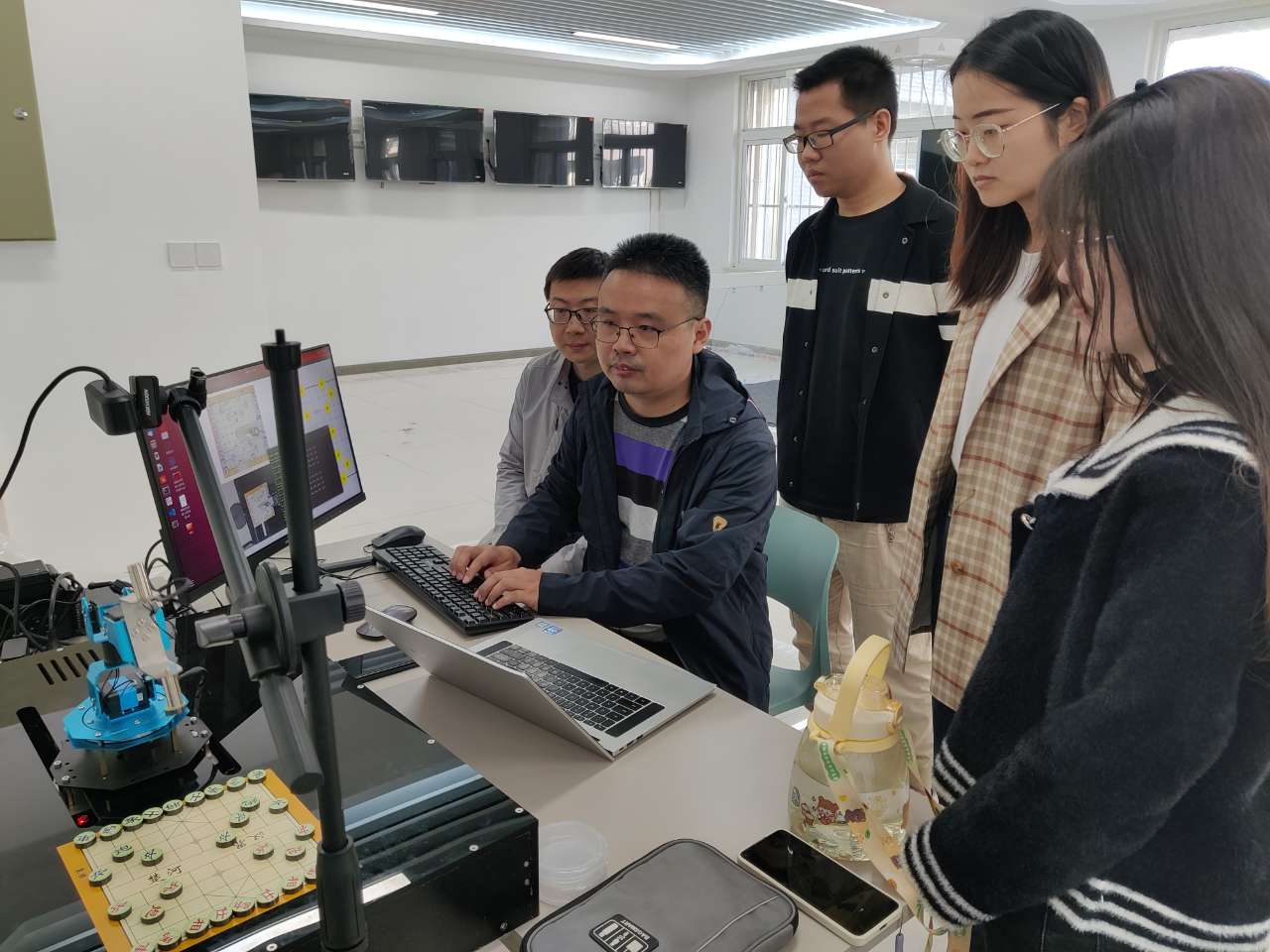 本网讯(通讯员:沈薇 周欢)为进一步使大数据与人工智能系教师对人工智能应用创新实验室新购置AI教具熟练运用,10月31日北京中软国际教育科技有限公司工程师走进校园开展AI教具使用培训活动,培训内容主要包括象棋对弈机器人和人工智能实训模组的使用,人工智能教研室全体教师参加培训,部分感兴趣的学生也参与了培训。