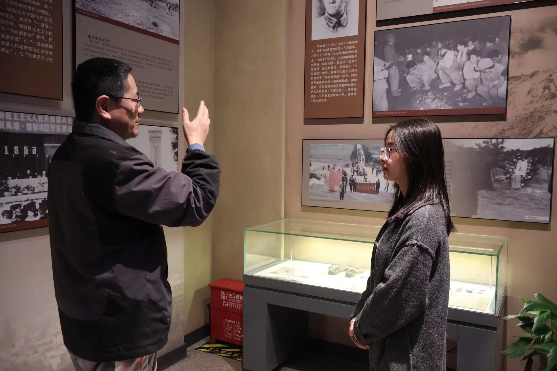 本网讯(通讯员:李颖)为全面贯彻落实习近平总书记关于思政课建设的重要讲话精神,努力打造一支政治强、情怀深、思维新、视野广、自律严、人格正的高素质思政课教师队伍。3月20日下午,马克思主义学院《中国近现代史纲要》课程组全体教师来到beat365网登红色文化实践教育基地——合肥市蜀山烈士陵园的安徽革命烈士事迹陈列馆,开展“行走的思政课”之红色文化示范课教研活动。马克思主义学院红色文化专家赵东云副教授全程讲解并示范教学,与青年教师们分享如何将地方红色文化有机融入课堂教学,进一步挖掘“红色元素”,上好思政课。