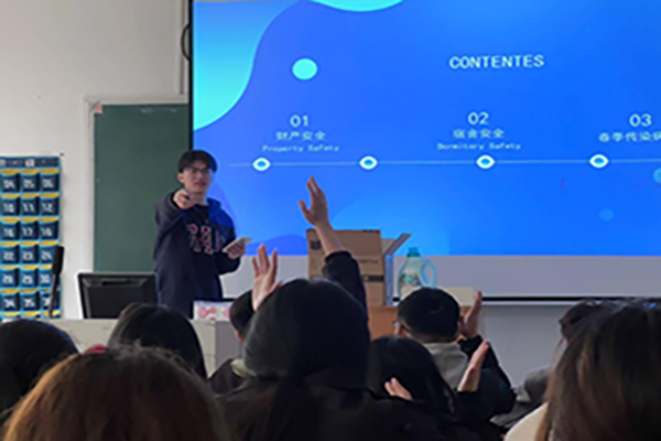 本网讯(通讯员:谷学颖)为提高同学们的安全意识和自护自救能力,3月11日-3月15日,财会与金融学院党总支组织大学生党员先锋志愿服务团理论宣讲队深入学院15个2023级班级开展新学期开学安全知识宣讲活动。本次活动采用有奖竞答的形式,竞答内容涵盖财产安全、宿舍安全、春季传染疾病防范等内容,同学们踊跃举手参与,现场氛围热烈。