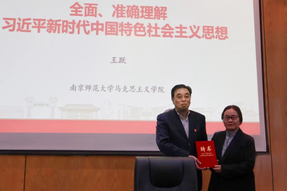 王跃教授现任南京师大马克思主义学院教授委员会主任,是马克思主义中国化研究博士点带头人,长期从事马克思主义中国化、中共党史、高校思政课方面的教学和研究。本次讲座聚焦“全面、准确理解习近平新时代中国特色社会主义思想”,帮助师生加深对习近平新时代中国特色社会主义思想的认识和理解,同时也为师生以习近平新时代中国特色社会主义思想的世界观和方法论为指引,坚持守正创新开展学术研究奠定了基础。