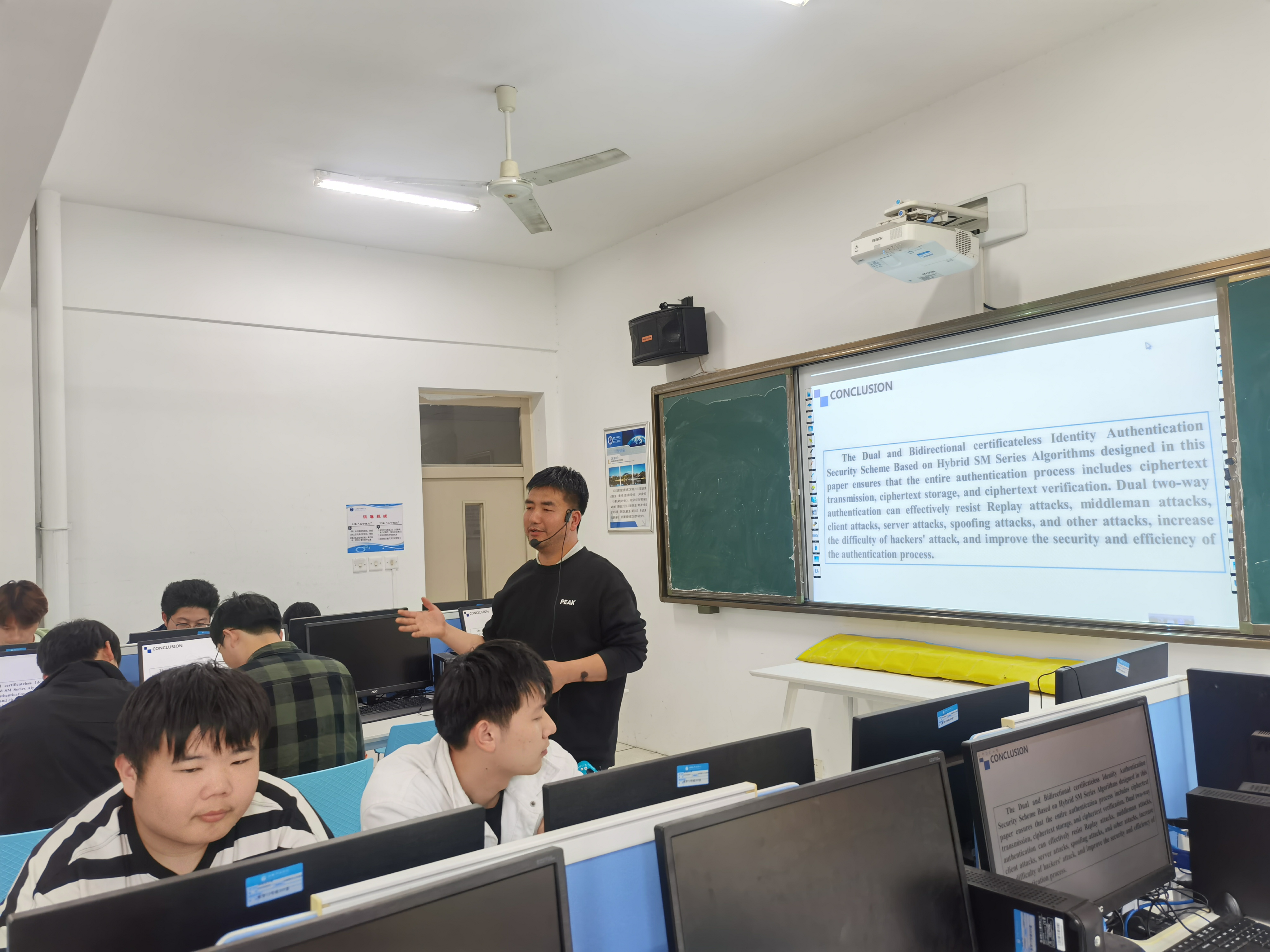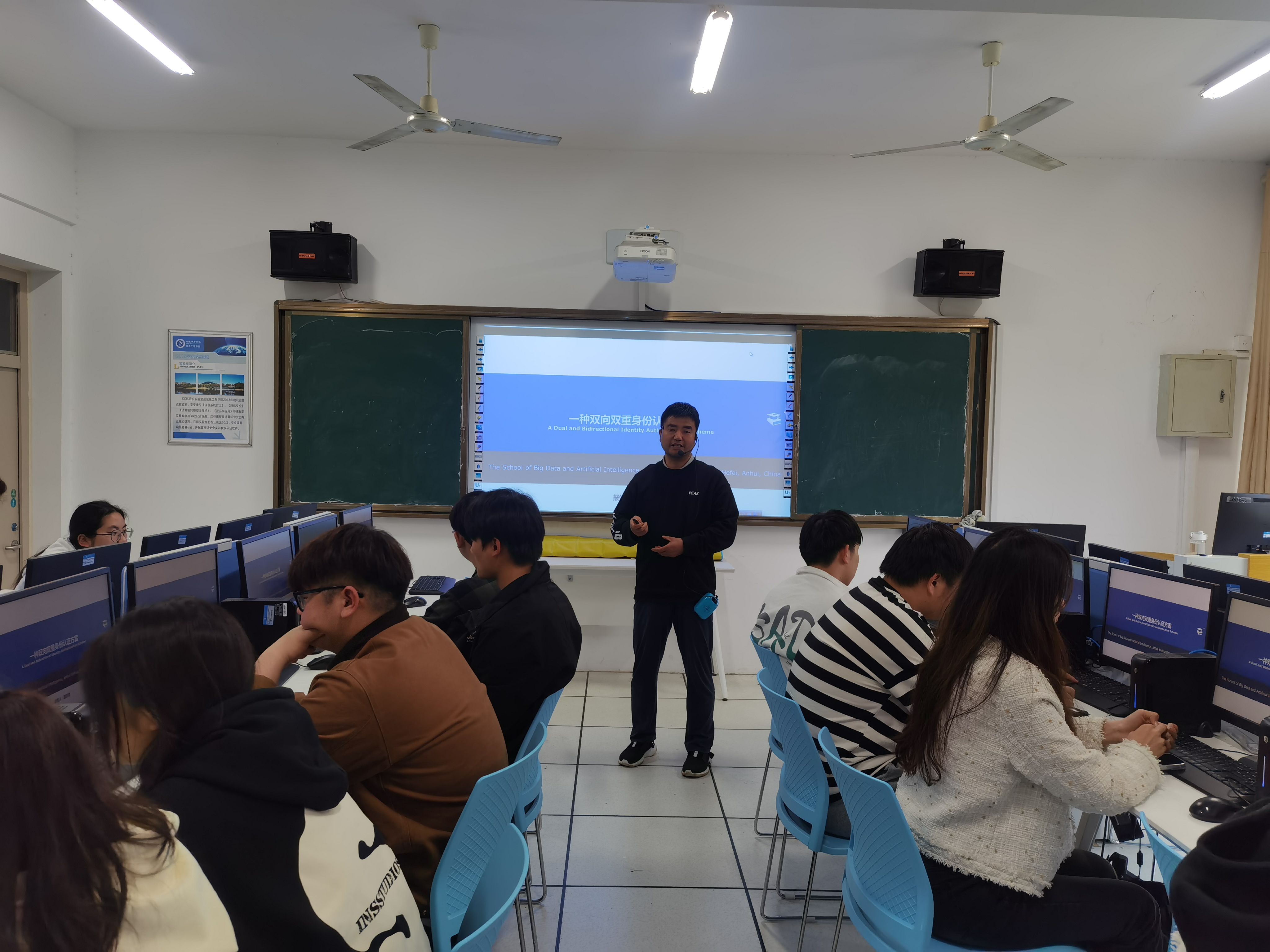 本网讯(通讯员:李钦钦)4月17日下午,大数据与人工智能学院在13#309举行“一种双向双重身份认证方案”学术报告会,22级软件工程专业学生和部分教师参加,讲座由路贺俊教授主讲。