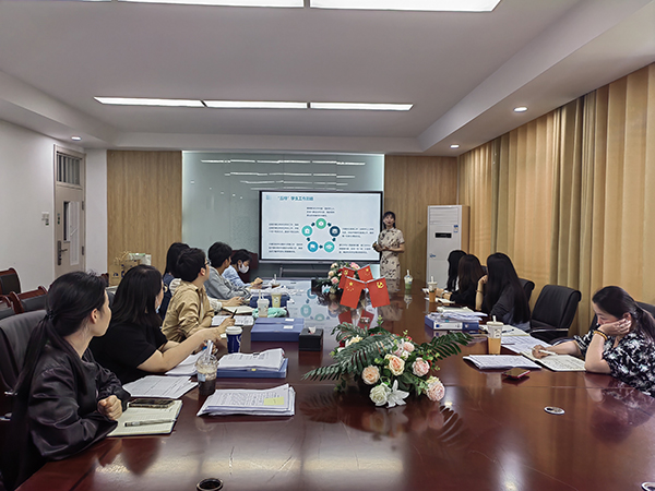 会议第二项,由外国语学院心理联络员刘庆进行“五特”学生工作经验分享。此次分享涵盖了“525心理健康月”活动开展情况、“五特”学生工作总结、工作创新、工作启示四个方面。首先,她以心理委员培训会、部署会、推荐会、反馈会“四会”为举措,积极引导学生参与“525心里健康月”活动,着重发力,再创佳绩。然后,她总结了外国语学院“五特”学生工作特色做法,例如,外国语学院建立完整学生心理健康档案体系、建立信息反馈三级制,保证信息畅通,及时发现问题。随后,她介绍了外国语学院在心理健康教育工作方面所取得的创新。例如,外国语学院设立了心理咨询室-“知心小屋”、举办了辅导员案例分析交流会、“院长接待日”、主题班会、公众号心理推文等形式多样活动,并将文体活动融入心理育人工作中。最后,她向大家分享了心理健康教育工作启示。这些宝贵的经验为其他院系提供了宝贵的参考与借鉴。