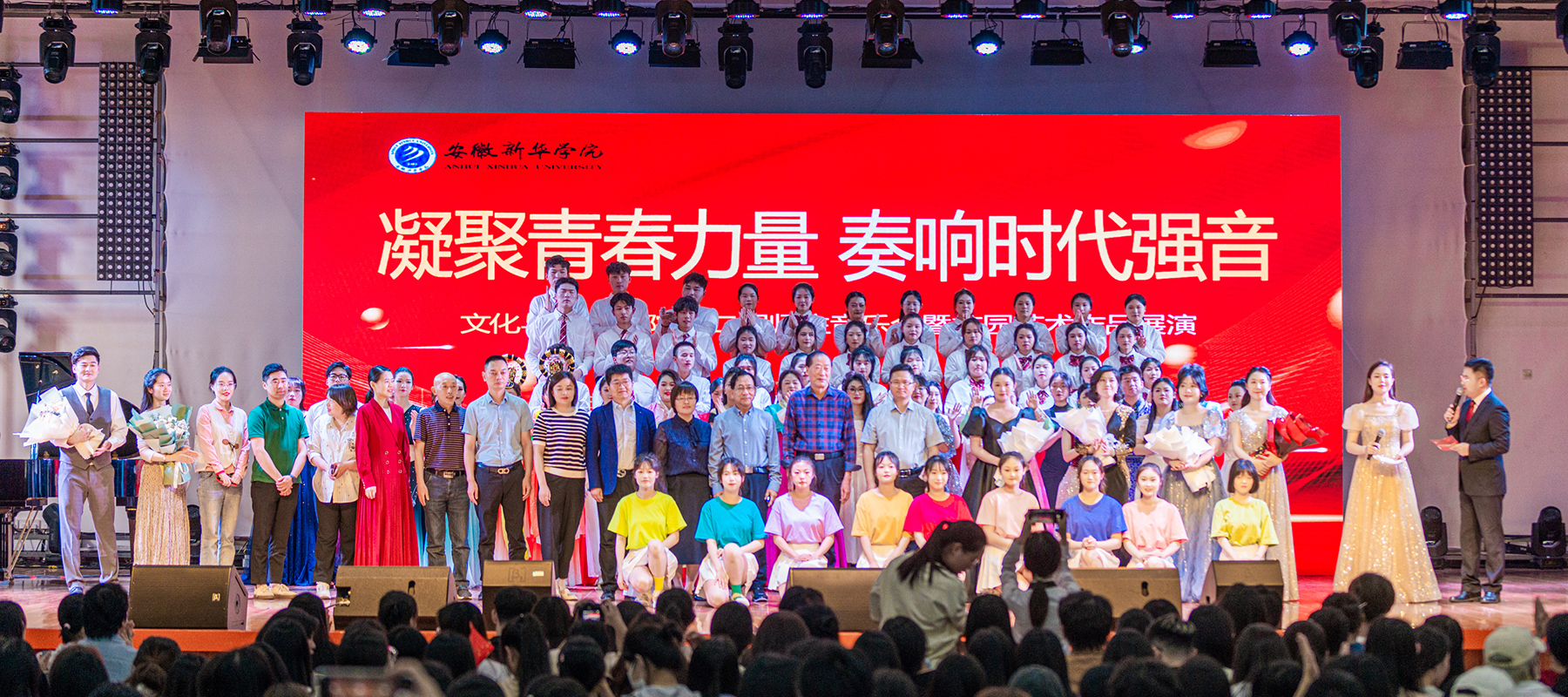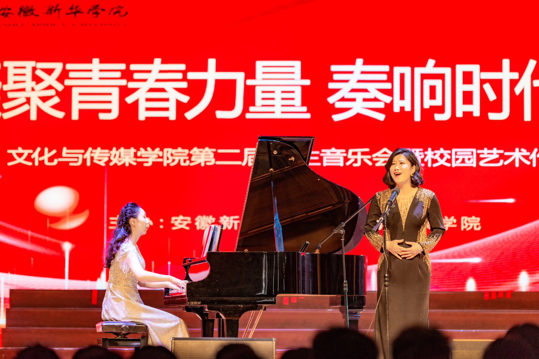 本网讯(通讯员:丁则智、王婧姣 摄影:融媒体工作室/范朝晖)为进一步创新艺术教育,丰富学生第二课堂,提炼人才培养特色,展现师生风采,5月31日,由文化与传媒学院主办的“凝聚青春力量 奏响时代强音”——第二届师生音乐会暨校园艺术作品展演在学校大礼堂成功举办。校董事长储国定,校党委书记、督导专员邸建伟,副校长贺行佳,校长助理邵玲等学校领导出席了本次音乐会。