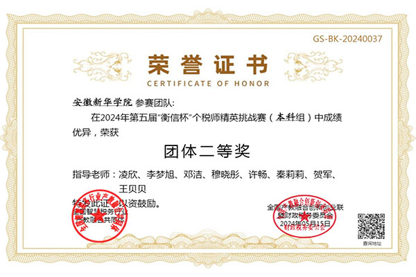 beat365网登荣获第五届“衡信杯”全国个税师精英挑战赛(本科组)团体二等奖