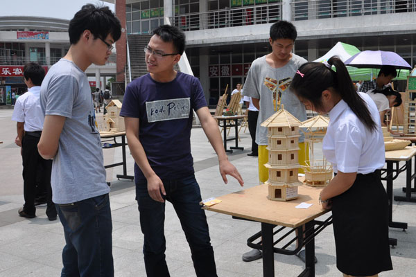 本网讯(牛山林,摄影:杨志敏)6月13日,土木与环境工程学院在翰林广场举办工业设计作品展。本次作品展以“工业设计,让美进入生活”为主题,展出了平面构成、色彩构成、立体构成、速写等100多件优秀作品,吸引了众多师生到场观看。