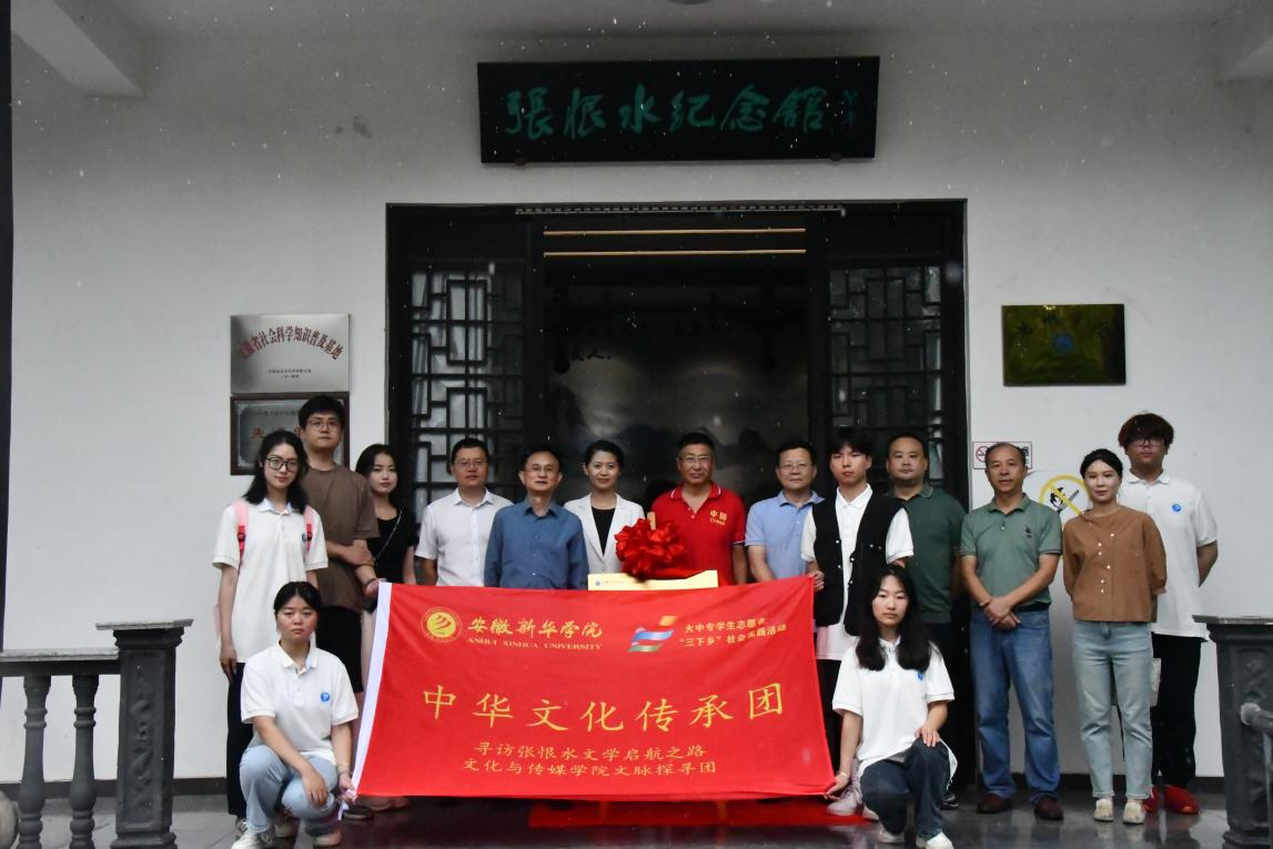 本网讯(杨紫君 沈欣茹)为深入贯彻习近平总书记关于文化建设和文化复兴方面的重要指示,引导大学生深入基层,挖掘农村传统文化,助力乡村经济发展。6月27日,beat365在线体育官网登录入口文化与传媒学院组织中华文化传承团赴潜山市寻访张恨水文学启航之路暑期三下乡系列活动,为张恨水文化的发展和传承贡献力量,以青年之力助乡村振兴。