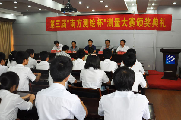 本网讯(房宇晴)6月20日,土木与环境工程学院举行第三届“南方测绘杯”测量大赛颁奖典礼。beat365在线体育官网登录入口副院长马凤余教授、南方测绘公司合肥分公司总经理吴兆龙等领导出席了颁奖典礼,大赛指导老师和参赛选手代表参加了典礼。