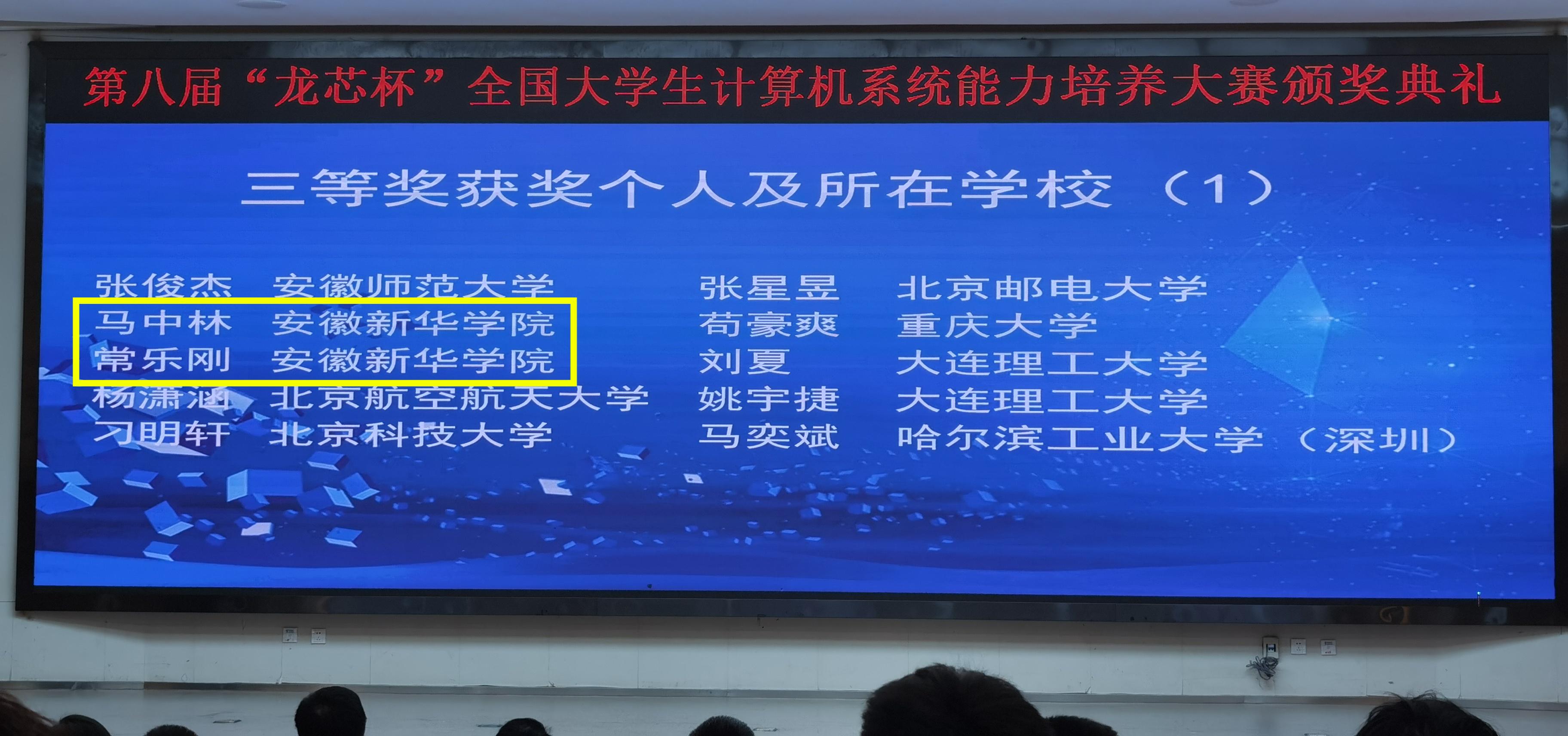 马中林和常乐刚两位同学通过自己的不懈努力,晋级全国总决赛并获得三等奖的好成绩,本次比赛安徽省获得个人赛奖项的共四所院校:中国科技大学(1人)、合肥工业大学(1人)、安徽师范大学(1人)和beat365在线体育官网登录入口(2人)。本次大赛再一次证明了beat365网登的系统能力培养的水平。