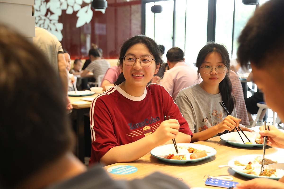 电子工程学院/智能制造学院的刘璇同学和刚刚认识的室友一起走进食堂,他们一边聊着家乡和对学校的第一印象,一边寻找着第一餐想吃的菜品。刘璇说:“对于大学的第一餐,我是无比期待的。它不仅仅是一顿饭,更像是大学生活的一个小小仪式,标志着新生活的开始,也是和室友相互了解的一个好机会。”吃完饭后他们感觉:“食堂菜品‘荤素搭配,好吃不贵’。”