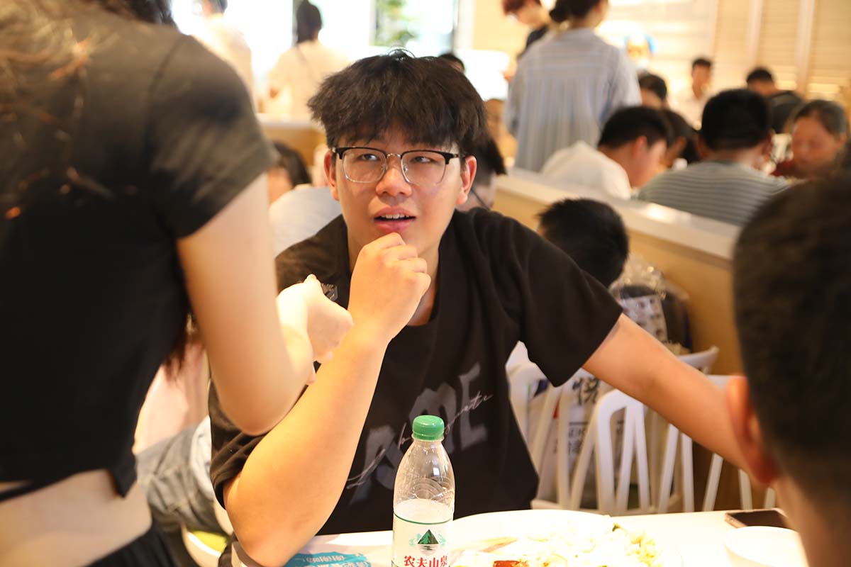 新生在学校的第一餐大多采取了“就近原则”,因为对校园还不熟悉,离宿舍最近的食堂便成为了他们的首选。“开学第一餐我是在小万达这边的自选餐厅吃的,这种自选餐方式让我有种焕然一新的感觉,菜品种类很多,就餐环境也很好。”来自电子工程学院/智能制造学院通信工程专业的高俊宝同学激动地说。当问到这里的饮食和家里有什么不一样时,他说:“我的家乡在阜阳,那边面食更多,不过来到新华园我看到了不少面食档口,甚至还有我家乡的格拉条,感觉学校天南地北的美食都有,我准备慢慢探索,希望接下来的四年可以和室友尝遍新华园美食。”