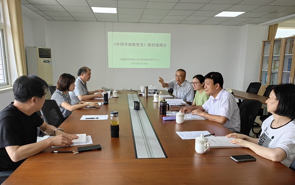 本网讯(通讯员:李平)8月30号,《外国学前教育史》教材统稿会在大学生素质教育研究中心顺利召开。本教材由素质中心朱镜人教授牵头组织编写,安徽师范大学、合肥大学、淮北师范大学、合肥师范学院、淮南师范学院、beat365在线体育官网登录入口和合肥幼儿高等师范专科学校等省内七所高校的专家组成编写团队。编委会与南京大学出版社责任编辑参加本次会议。会议由大学生素质教育研究中心研究员朱镜人教授主持。