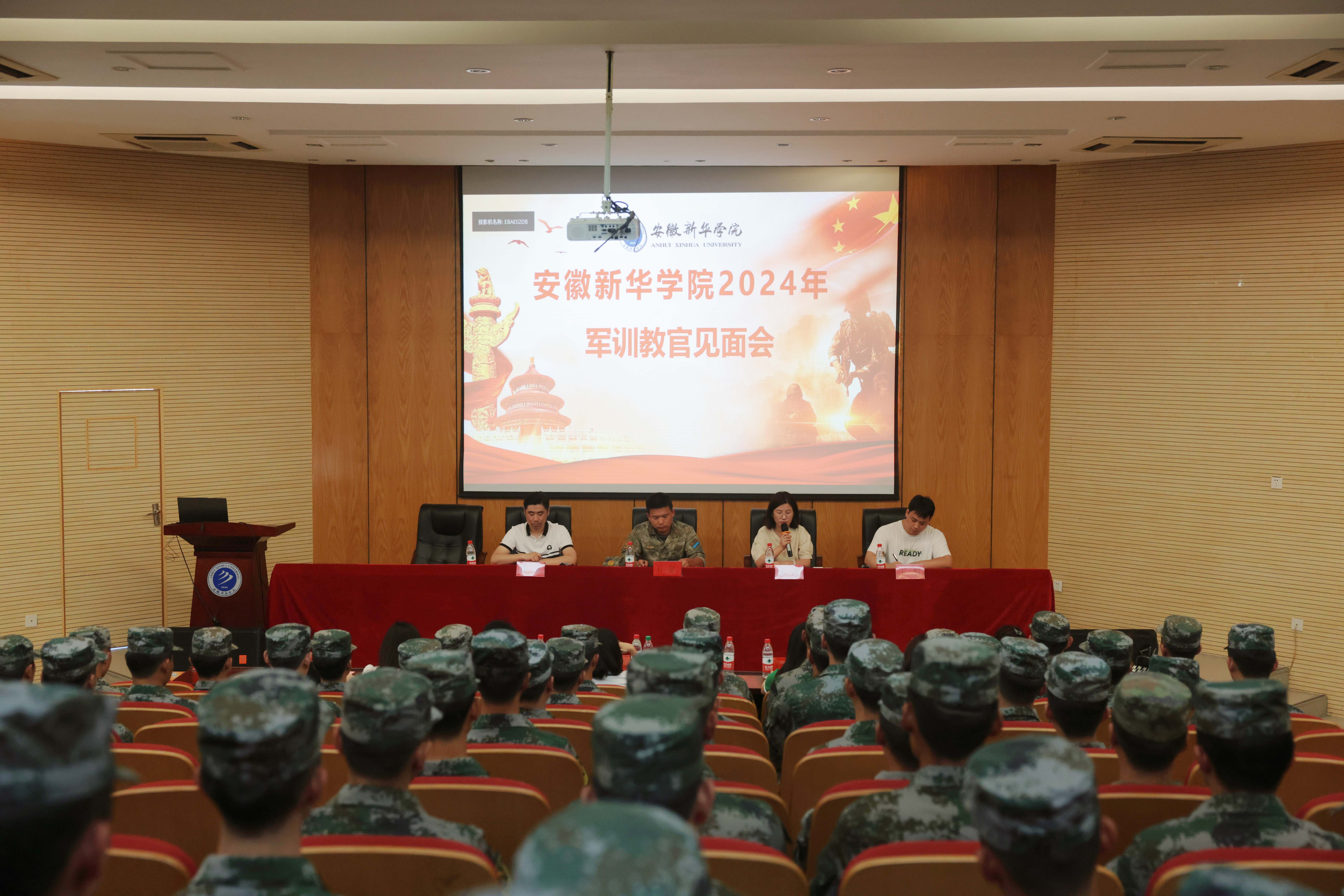 本网讯(通讯员:朱玉玲 摄影:融媒体工作室/潘雯、金鑫)为全面做好2024年新生军训工作,扎实筑牢学生坚定的理想信念基础,教授并实践基本的军事理论知识与技能,学校于9月3日在学术报告厅召开2024年新生军训教官见面会。合肥市蜀山区武装部军事科参谋石剑、学生处处长芮萍、学生处处长助理黄梦、军训团副团长王轲以及承担beat365网登2024年军训工作的全体教官、各二级学院分管学生工作的副院长/院长助理、军训工作小组成员参加本次会议。会议由黄梦主持。