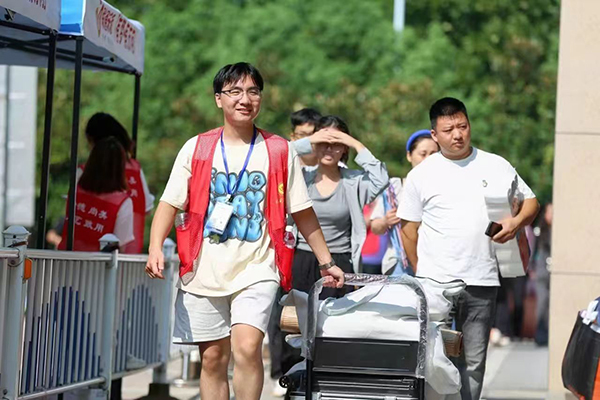 8月30日清晨,外国语学院的迎新志愿者们便精神饱满地等候在各个迎新点。他们统一服装,洋溢笑容,随时准备为新同学提供帮助。“同学,让我帮你拿一些吧。”“请这边走。”志愿者热情协助新生搬运行李,风吹日晒全不怕,红色马甲的身影步经校园各处,他们用脚步丈量校园土地,途中分享着大学生活的点滴经验,这正是一场心与心的相遇!