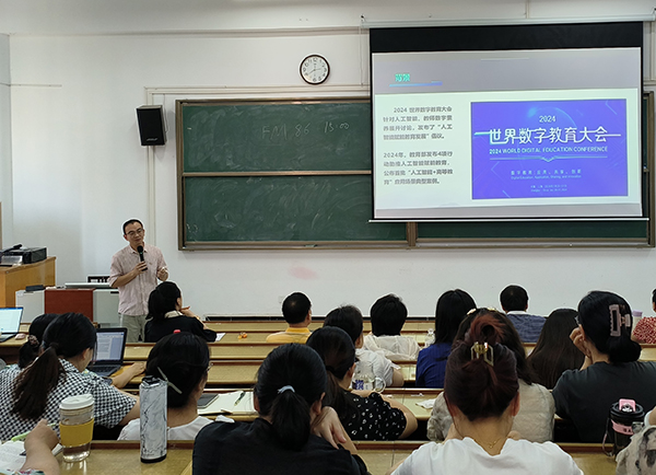 随后,郝亮以“大语言模型背景下外语学科的发展路径”为题进行学术分享,深入浅出地介绍了大语言模型的界定与特征,分析了当前外语教育面临的机遇与挑战,鼓励教师快速应变,主动求变,不断探索并创新教育理念与教学方法,以科学引领创设智慧教学,励与会教师增强教育数字化转型意识,让数字智慧赋能教研教学,提升专业素养和能力。