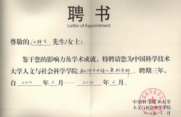 7月11日下午,中科大人文与社会科学学院举行了受聘仪式,并由MTI中心主任陈纪梁教授向任静生等三位受聘教授颁发了聘书。学校在职院长受聘中国科大这样的名校兼职导师在beat365网登历史上尚属首次,为迎接教育部本科教学工作合格评估增添了支撑。