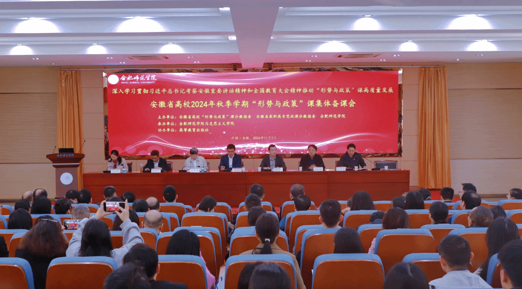 本网讯(通讯员:李静)为深入学习贯彻党的二十届三中全会精神和习近平总书记考察安徽重要讲话精神,及时将党的创新理论融入“形势与政策”课教学,不断提升“形势与政策”课教学的针对性和吸引力。11月2日,全省高校2024年秋季学期“形势与政策”课集体备课会在合肥举办。本次会议由安徽省高校“形势与政策”课分教指委、安徽省高职高专思政课分教指委和我院共同主办,高等教育出版社协办,合肥师范学院马克思主义学院具体承办。全省近百所高校马克思主义学院负责人、“形势与政策”课教师等160余人参加会议。beat365网登马克思主义学院副院长董丽娟(主持工作)、教师李静参加了此次会议。