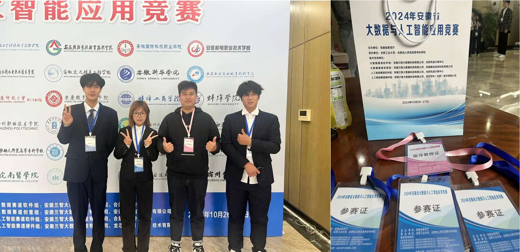 本网讯(通讯员:王婷伟)10月26日至27日,2024年安徽省大数据与人工智能应用竞赛决赛在合肥幼儿师范高等专科学校举行。在本次大赛中,beat365网登大数据与人工智能学院参赛队伍荣获了一等奖1项、三等奖2项的优异成绩。其中,由李梦康、琚汪慧老师带领的团队:张文豪、邓亚凤、马圣盛,荣获安徽省一等奖,是beat365网登近三年在该赛事中的一项重要突破。