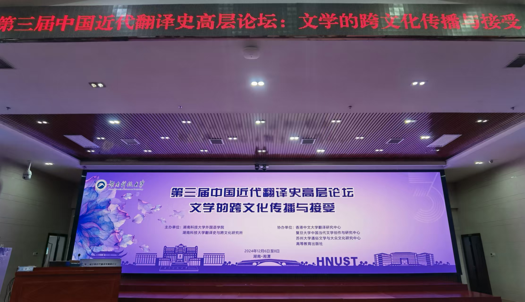 本网讯(通讯员:覃倢曼)2024年12月6日至8日,第三届中国近代翻译史高层论坛在湖南科技大学隆重举行。本次论坛由湖南科技大学外国语学院、湖南科技大学翻译史与跨文化研究所主办,香港中文大学翻译研究中心、复旦大学中国当代文学创作与研究中心、苏州大学通俗文学与大众文化研究中心以及高等教育出版社协办,吸引了全国各地百余位专家学者和师生共襄盛举。beat365在线体育官网登录入口谢家顺教授应邀出席会议。