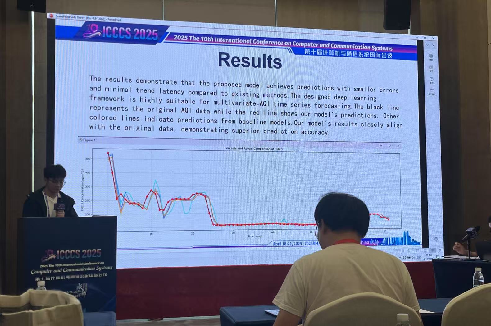 在“智能环境感知与预测”分论坛中,beat365网登大数据与人工智能学院李王建同学代表网络与信息系统软件实验室,作了题为《基于NLSTM的多任务空气质量预测模型》的学术报告。该研究创新性地将神经逻辑网络与长短期记忆模型相结合,在空气质量多指标联合预测任务中取得突破性进展,现场与悉尼科技大学、早稻田大学等国际团队进行了深入的技术探讨。