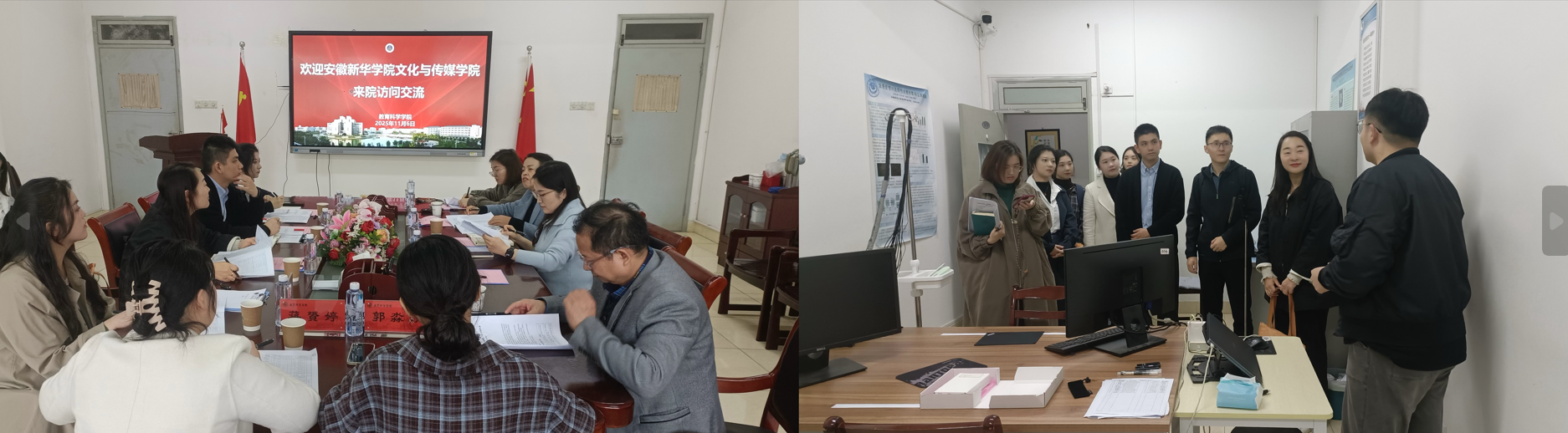 11月6日,调研团队奔赴安徽师范大学教育科学学院,就小学教育专业建设、课程体系优化、师资培养与教学改革等关键问题,与该校专家学者展开深入交流与探讨。交流会上,安徽师范大学教育科学学院教育系主任陈娜指出,专业建设与人才培养方案修订应紧密贴合办学定位和学生就业需求,精心打造独具特色且富有竞争力的专业品牌。徐红教授则强调,在当前教育发展的新形势下,专业建设要敢于突破传统思维的束缚,走出一条差异化特色发展之路。此外,安徽师范大学小学教育专业负责人王芳(全科型)、陈晨(复合型)两位老师结合自身教学实践,在课程设置、实践教学等方面提出了诸多具体且具有建设性的建议。交流会后,在安徽师范大学心理学系金剑教授的陪同下,调研团队参观了教育科学学院的相关实验室,先进的仪器、丰富的建设经验,让调研团队成员深受启发,为我院小学教育专业实训教学条件的升级提供了新的思路。