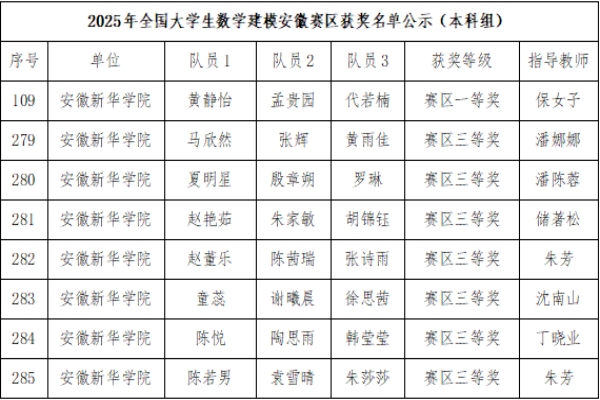 beat365网登学子在2025年高教社杯全国大学生数学建模竞赛中首获安徽赛区本科组一等奖