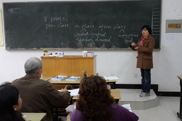 本网讯(通讯员李静)为进一步扎实开展教学质量监控工作,11月24日,外国语学院举办了专聘教师教学检查与观摩活动。虽是周末且下着雨,但是18位专聘教师按时来到学校参加了这次教学活动,此外,外国语学院部分青年教师也参加了观摩活动。