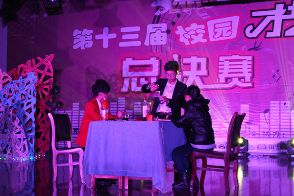 此次比赛选手们充分展现了当代大学生的青春与活力,共12组选手最终进入决赛。比赛分为三轮,内容涵盖了相声、小品、歌唱、魔术和舞蹈。伴随着柔美的灯光,优雅的音乐伴奏,1号选手结束了第一轮的比赛。 随后,其余十一组选手分别进行才艺展示,将比赛带入白热化阶段的当属11号选手王梦飞、刘晓倩的曲艺表演《大驾光临》了。《大驾光临》是根据当红相声演员贾玲的相声改编 ,在表演的时候,选手们充分利用自身的特点,说着地道的方言,最后他们以95.17全场最高分直接晋级第三轮。在第三轮比赛中,他们通过演绎经典相声《大话捧逗》,诙谐幽默的语句,滑稽的动作获得全场热烈的掌声,最终获得此次校园才艺大赛的第一名。