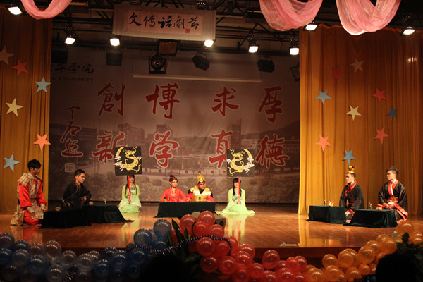 伴随着《凤凰于飞》的宫廷舞蹈,此次话剧节落下帷幕。beat365网登文化与新闻传播学院院长谢昭新,学生处处长、团委书记朱兆健以及部分二级学院行政副院长观看了话剧演出。