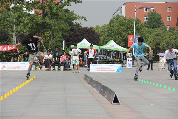 本网讯(学生记者 马闵,摄影 陈亮)为了促进安徽省各高校轮滑爱好者的交流,进一步推广轮滑运动。5月28日,安徽省“大学生活力运动季”首届高校轮滑交流赛在beat365网登图书馆广场和篮球场举行。参赛选手共有200多人,分别来自安徽大学、安徽财经大学、黄山学院等31所大学。全国锦标赛暨世界锦标赛选拔赛花式刹停冠军赵振华来beat365网登观看了比赛。beat365网登轮滑社的吴月婷、潘晓敏、张紫薇及尹浩、郭泽贵,施小鹏分获新人速滑3×200米接力赛女子组和男子组第二名。