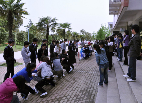据了解,参加此次活动的班级有09新闻班、新采班、09广告班、09文秘班以及09级艺术系各班级。各班均以班级为单位派出代表队,并以抽签方式决定自己的比赛对手。除了每班派出的8名同学参赛以外,其他的同学都主动组成拉拉队,为所在班级的同学加油。