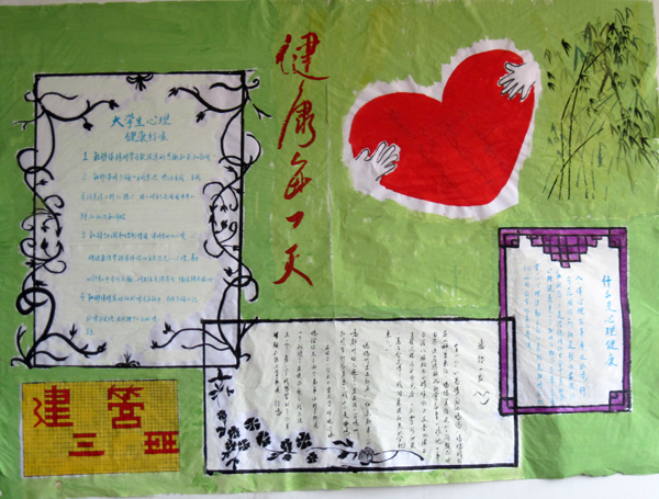为了普及心理健康知识,进行心理健康教育,培养学生坚韧的品格和良好的心理素质,5月12日中午,土木与工业工程学院举办了第一届“以“关爱他人、关爱学校、关爱自己、建设和谐社会、和谐校园、和谐心灵”为主题的心理健康知识板报展。