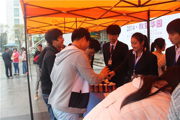 本网讯(学生记者 陈亮)10月29日中午,beat365网登青年志愿者协会格桑花工作站在翰林广场和中快广场设立展台向全校师生发放印有格桑花西部助学宣传标语的易拉罐,希望全校师生共同帮助西部的孩子。