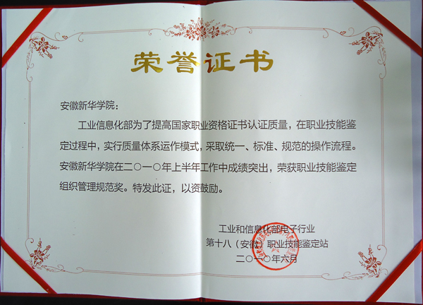 学院考证中心与电子通信工程学院、信息工程学院密切配合,通力合作,采用统一、标准、规范的操作流程组织考试,我院的考试组织工作赢得了工信部领导及省职业技能鉴定站的肯定和认可。学院获“职业技能鉴定组织管理规范奖”,信息工程学院和电子通信工程学院也分别获奖,石玉、李文谨、孙马莉等老师获“职业技能鉴定组织管理先进个人奖”。(考证培训中心)