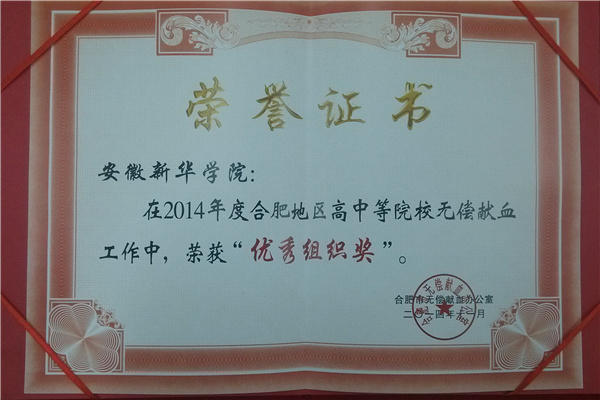 beat365网登获合肥市“无偿献血进校园”活动优秀组织奖