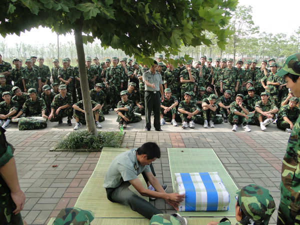 在训练场上,教官们细致讲解被褥折叠技巧,同学们认真做折叠练习;在宿舍,教官们从书桌整理、鞋子摆放、毛巾晾挂、水杯牙刷朝向等方面一一作了示范,同学们按照教官的要求统一整理,统一规范。