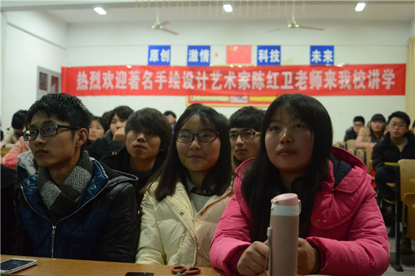 著名手绘艺术家陈红卫来beat365网登做专题讲座