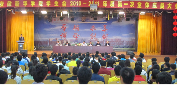 10月11日,校学生会2010—2011年度第一次全体成员大会在大礼堂隆重召开。院学生处副处长、团委书记马琪,校学生会指导老师吕翔出席会议,校学生会全体成员参加了此次会议。