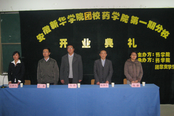 2010年11月24日中午,新华学院团校药学院第一期分校开学典礼在112阶梯教室隆重举行。院团委书记马琪、药学院院长张国升教授、药学院行政副院长计勇、药学院团总支书记钱静出席了开幕式,药学院第一期团校全体学员和各二级学院团总支学生会代表参加了典礼。本次开学典礼由药学院团总支副书记汪烨主持。