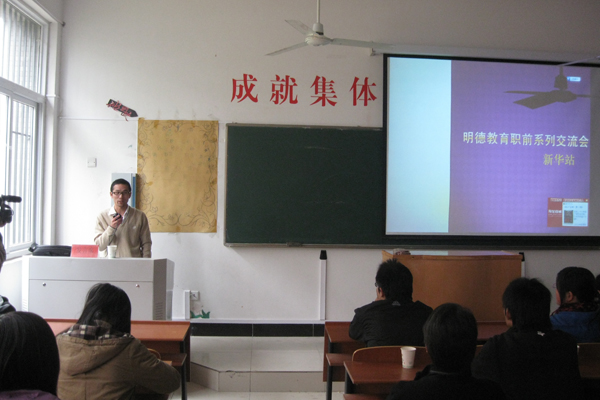 “明德教育”是一家教育培训机构,曾在多所高校举办讲座。此次是受动漫学院学生会邀请来校为广大新华学子做一次就职前的培训,为同学们解决一些求职之前的困惑。