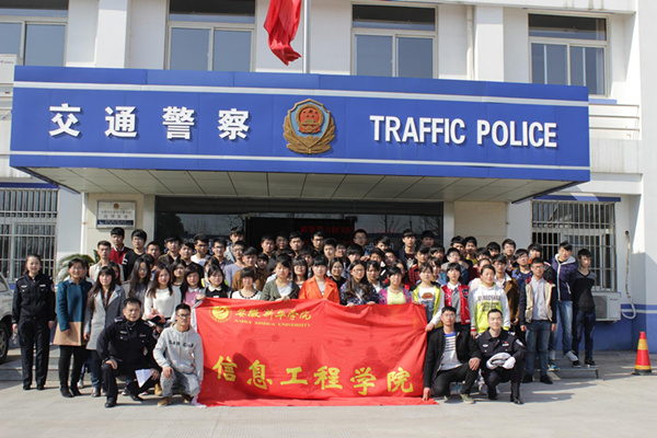 3月25日下午,信息工程学院14级计算机科学与技术(企业级应用软件开发方向)专业的全体同学在辅导员李苗老师的带领下,前往合肥市公安局交警支队高新大队进行关于交通安全的青年志愿者培训实践活动。同学们参观了行政服务、事故受理大厅和控制室,在安全教育宣传室观看了车祸发生瞬间的相关视频。随后,学生们认真聆听了综合警务中队的民警万玉荣关于交通安全知识的宣讲,并学习和操练了交通指挥的各个手势。在与交警大队的警官协商后,高新大队将会在清明节前后组织学生前往烈士陵园附近进行交通协管活动,深入将志愿者活动开展下去,将雷锋精神传承下去。