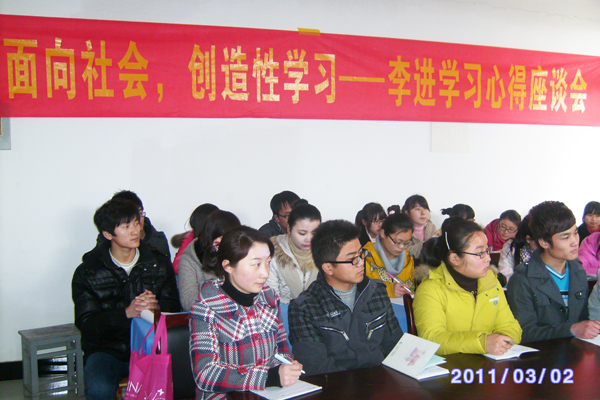 本次座谈会主要通过中文系2008级汉语言文学专业李进同学的个人创作历程及其取得的成绩,来探讨中文专业教育和发展的新理念,体现将兴趣爱好和学习相结合、创造性学习、进而培养适应于社会需要的应用型人才的重要性。座谈会上,李进同学首先向大家介绍了自己连续发表两部长篇小说(《谪仙曲》、《御灵录》)的过程,并详细分享了自己的学习与创作心得。参会的各专业学生分别就人文素质的养成、文学创作的价值取向、创造性学习以及理论联系实践等话题与李进展开了充分的交流。此次座谈会气氛热烈而友好,同学们发踊跃,在对李进的成绩表示赞赏与支持的同时,还向他提出了如何处理文学和现实生活关系等方面的问题与意见,并进行了深入的研讨。