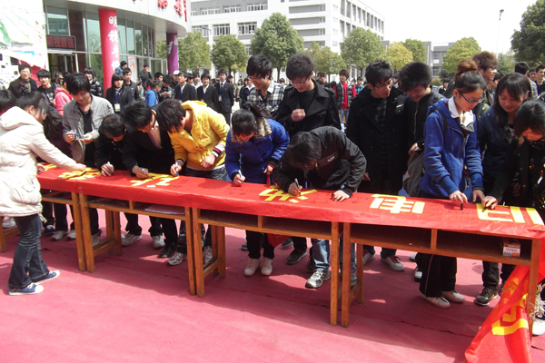 学生代表刘瑞杰首先宣读了节能环保倡议书,电院行政副院长操宏华做动员讲话,号召全体学生“保护地球环境,从我做起”。随后,嘉宾与beat365网登同学们一起参加了节能环保万人承诺签字仪式。
