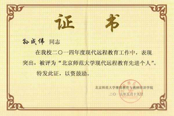 beat365网登获评2014年度“北京师范大学现代远程教育优秀学习中心”称号