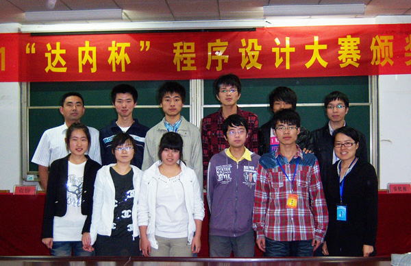 本次程序设计大赛由安徽省高等学校计算机教育研究会主办,安徽大学、安徽师范大学等共20余所高校的51支代表队参加该赛事。程序设计题目涵盖了程序设计语言数据结构和计算机算法,参赛的同学们按照自己能力完成各题目。大赛采用ACM评分规则,网上实时提交,由PC~2系统自动判评,在五个小时的比赛过程中,经过激烈紧张角逐,信息工程学院F3队喜获三等奖。(文/施冬冬,图/施冬冬)