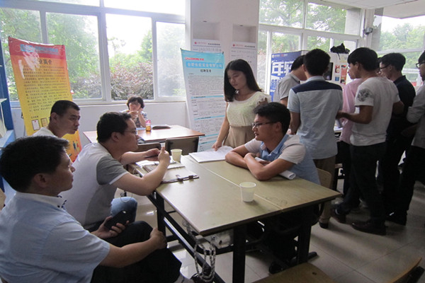 本网讯(通讯员:储金华)为促进2015届毕业生充分就业, 解决2016届专科毕业生顶岗实习,6月17日下午,电子通信工程学院举办了2015年夏季招聘会。本次招聘会邀请了安徽四创电子股份有限公司、合肥长虹实业有限公司等7家知名企业,提供了电子、自动化类专业技术岗位150余个以及部分行政、营销类综合性岗位,吸引了近200余名毕业生前来应聘。