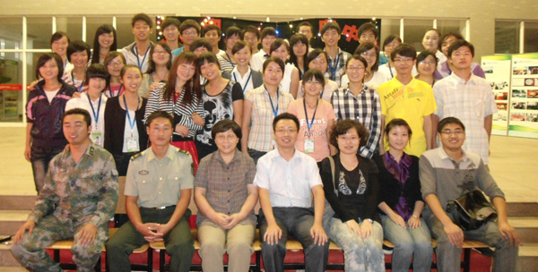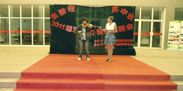 金秋九月,丹桂飘香。中秋前夕,药学院、国际教育学院师生欢聚一堂为2011级新生送上独具匠心的开学礼物,而2011级的新同学也用自己的表演为佳节前夕的校园增添温暖和乐趣。 9月11日晚,在药学院教学楼东大厅广场隆重举行了“迎新生、庆中秋”文艺晚会,热烈欢迎2011级新同学的到来,欢庆传统的中秋佳节。本场晚会由药学院主办,国际教育学院协办,药学院和国际教育学院的各位领导、新生班辅导员、军训教官和药学院、国际教育学院约400名新生共同观看了本场晚会。