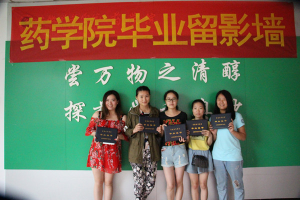 学院为方便毕业生合影留念,还专门设立了留影墙。在药学院 “尝万物之清醇,探药学之奥妙” 院训下,毕业生们为自己留下了美丽的瞬间,同时,也为圆满的大学生活画下了一个句号。
